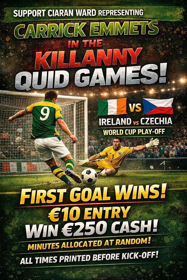 Don't forget to enter the draw and support Ciaran Ward representing Carrick Emmets in the Killanny Quid Games!